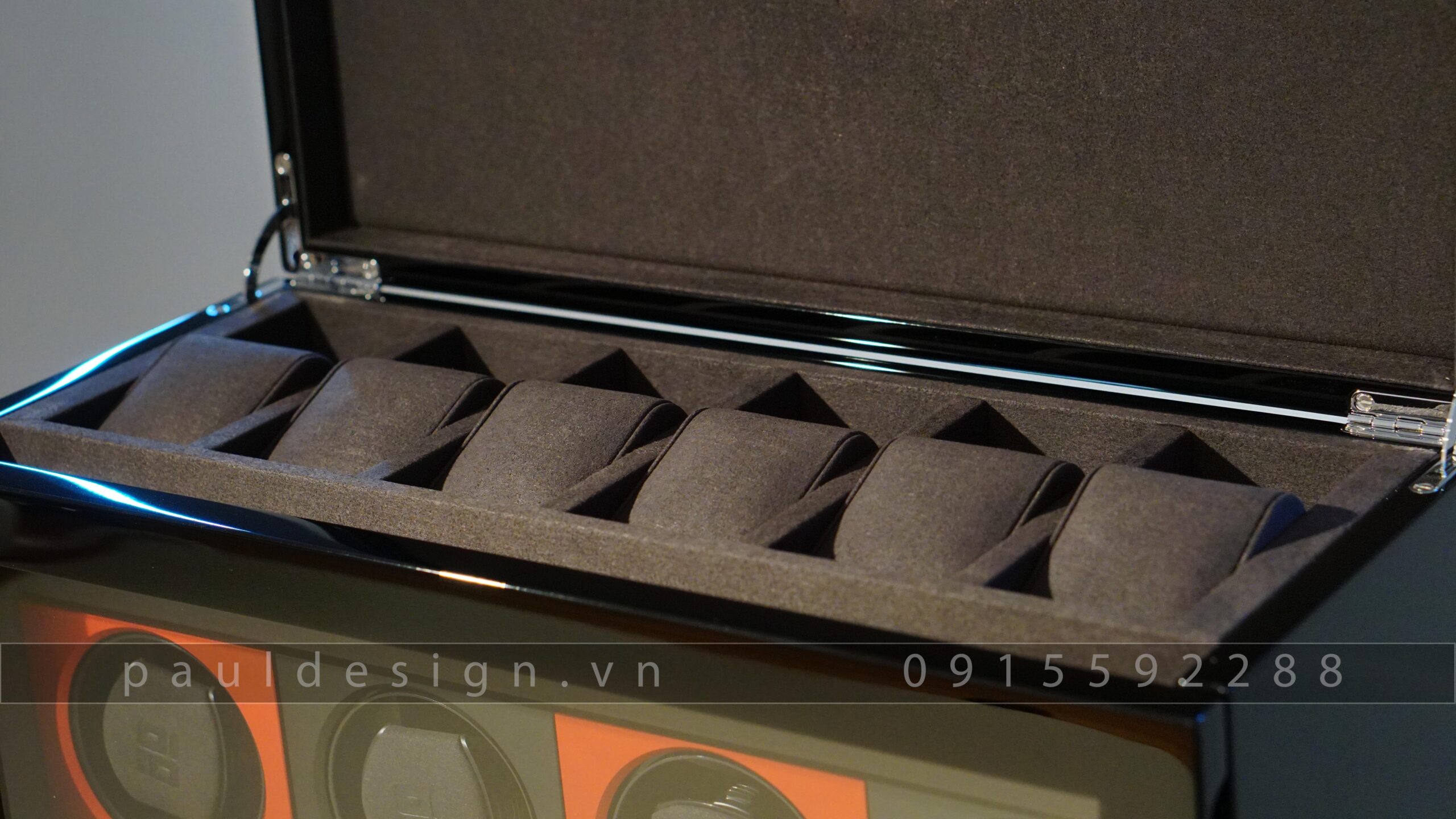 - Hộp quay đồng hồ có 5 màu đa dạng Black, White, Red, Blue, Grey.