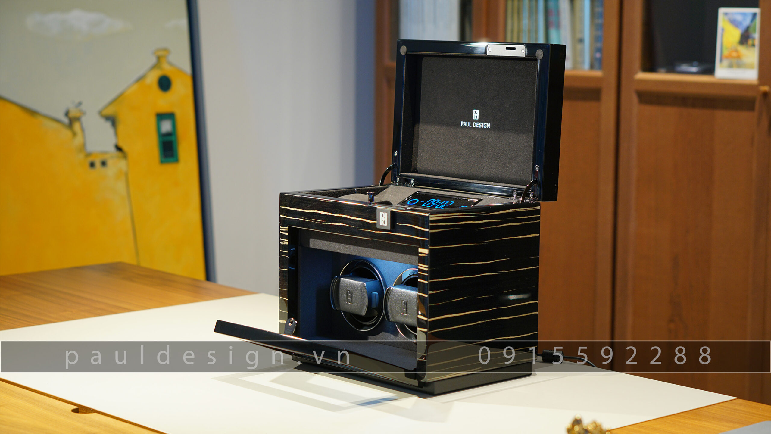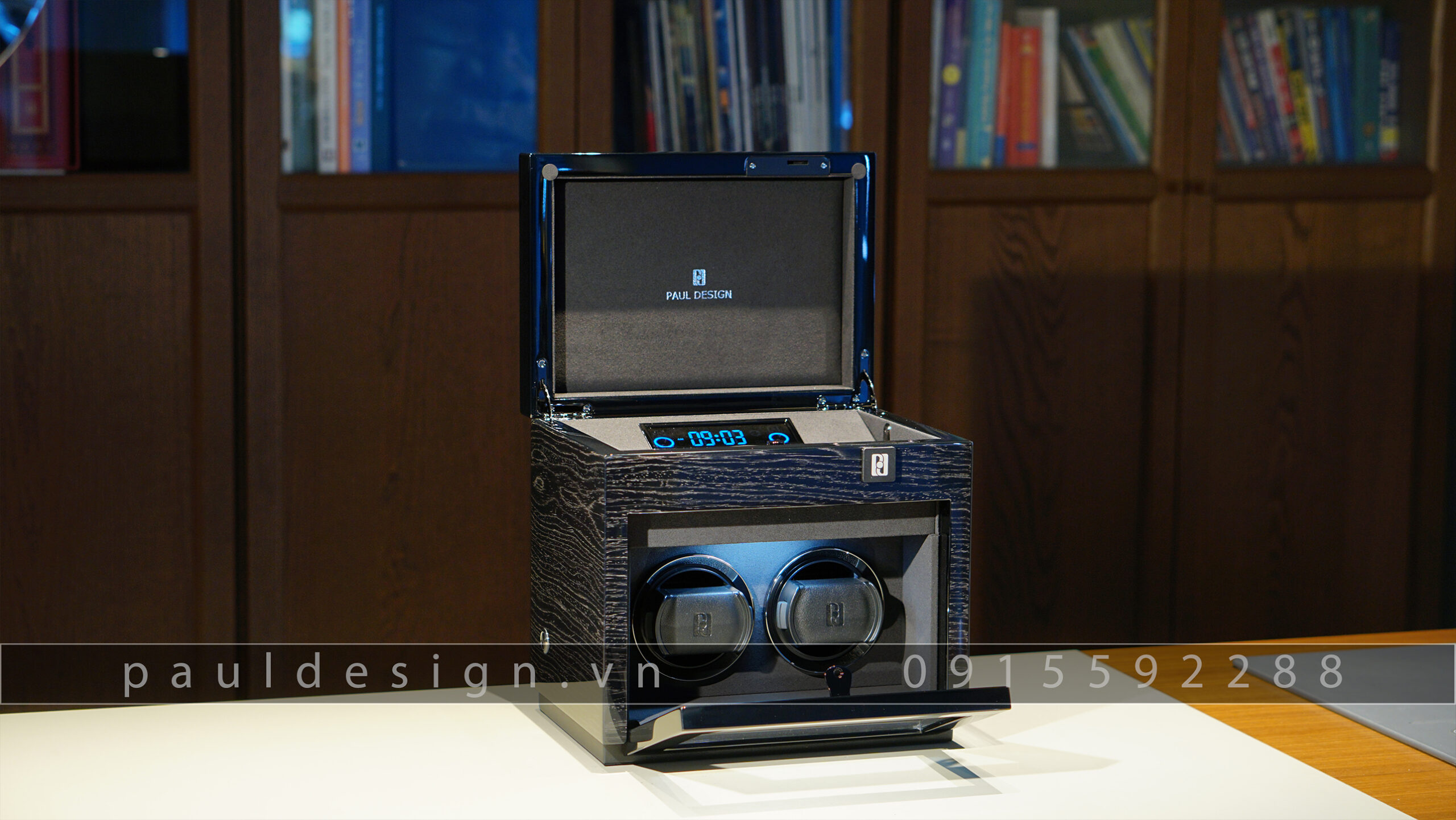 Hộp đựng đồng hồ phiên bản Gentlemen 2+3 của Paul Design model 2023 tích hợp thêm chiếc khóa cơ. Sản phẩm có 2 ổ quay và thêm 3 ngăn đựng tĩnh. Một sản phẩm vừa có thiết kế độc đáo vừa nâng cao được tính an toàn.