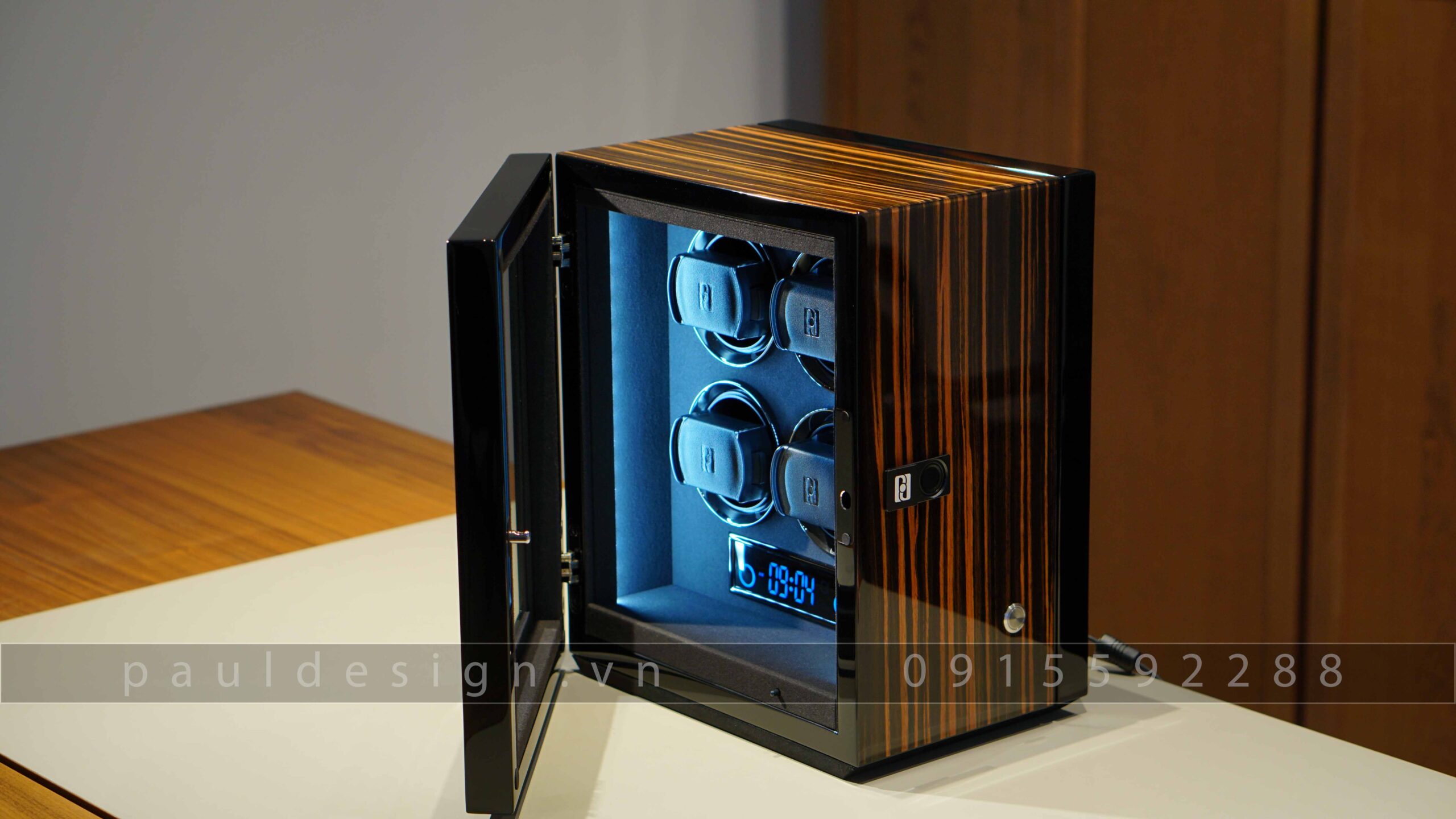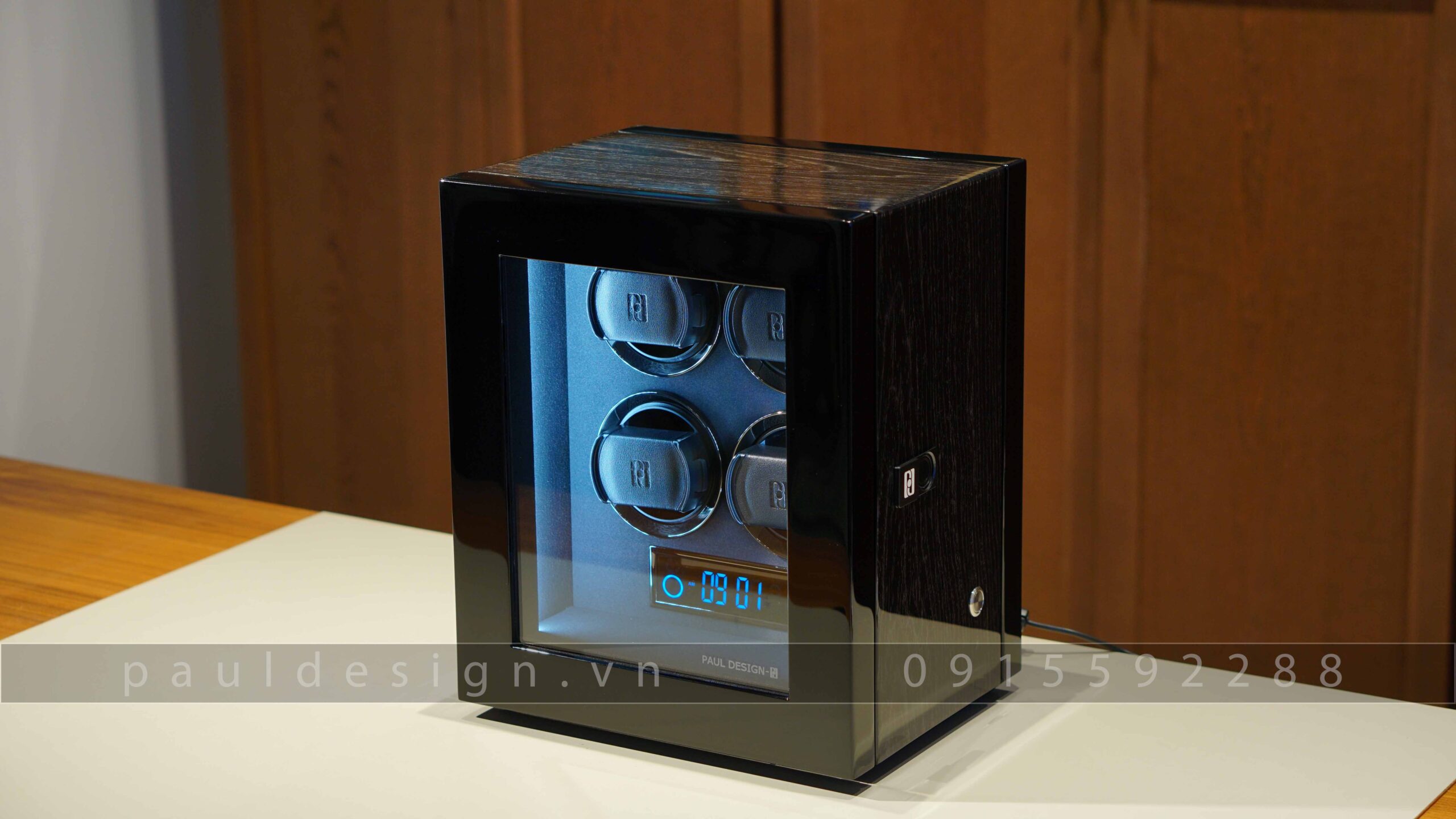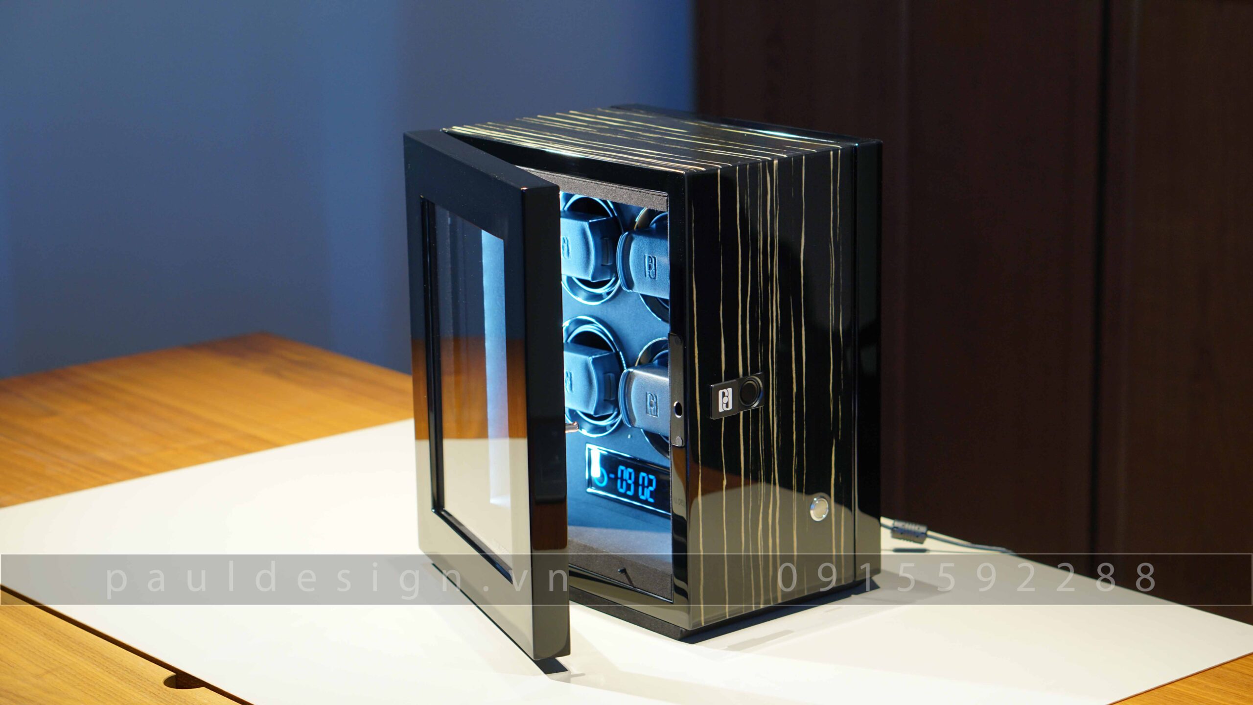 Hộp quay đồng hồ phiên bản Gentlemen – Fingerprint 4 là sự lựa chọn đúng đắn, khi bạn đang có bộ sưu tập đồng hồ khoảng 5 chiếc. Paul Design cho ra mắt mẫu 4 ổ quay nhằm giúp chiếc đồng hồ của bạn luôn luôn hoạt động trong trạng thái hoàn hảo, sẵn sàng cho bạn đeo lên tay bất cứ lúc nào mà không cần chỉnh lại thời gian.