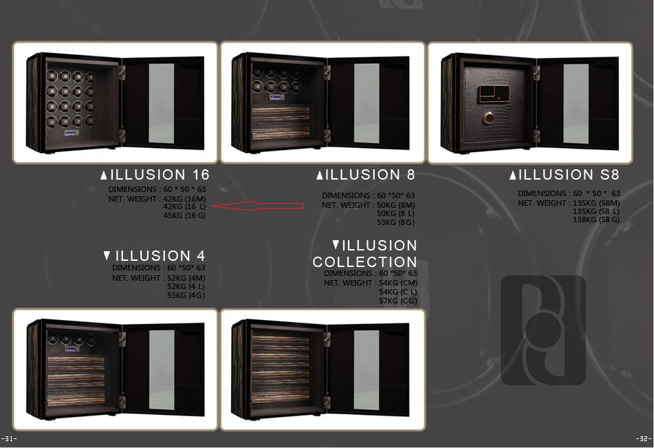 Tủ xoay đồng hồ của công ty Paul Design cho ra mắt phiên bản Illusion 16. Sản phẩm lần này dành cho những người có niềm đam mê sưu tập đồng hồ. Phiên bản có kích thước (60*50*68). Trọng lượng 42kg là một mức khá hợp lý mà vẫn tạo cảm giác an toàn, chắc chắn.