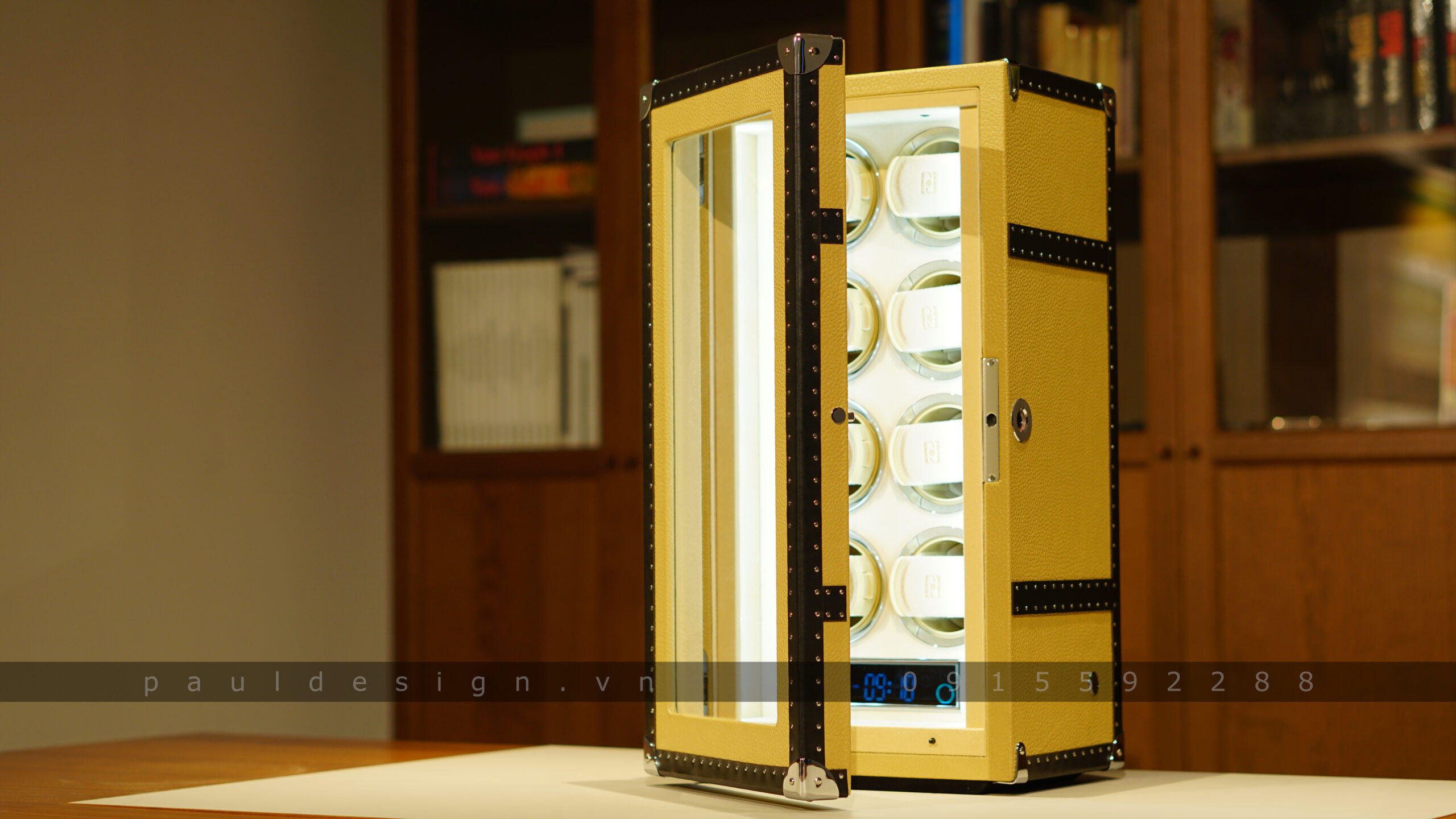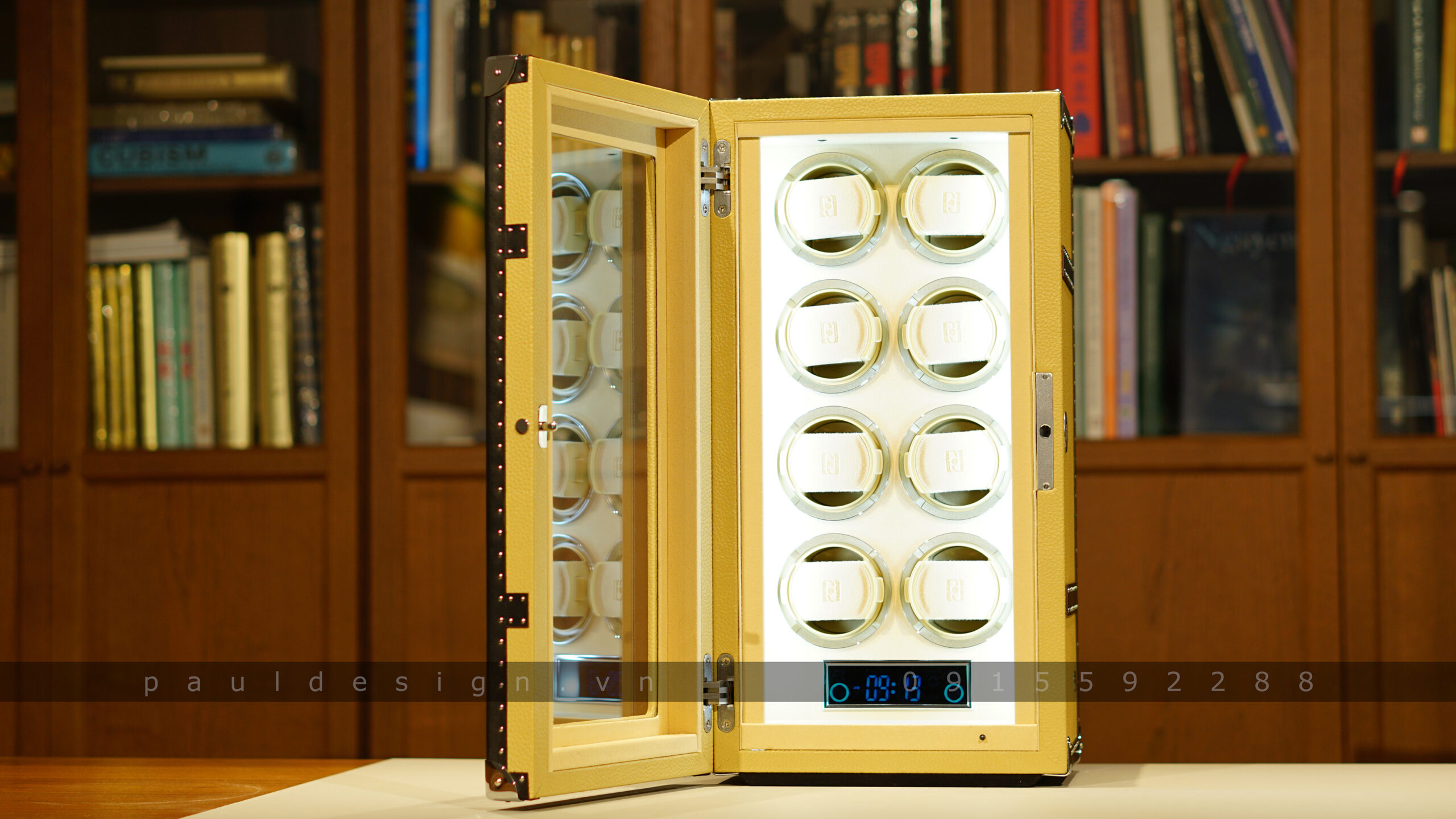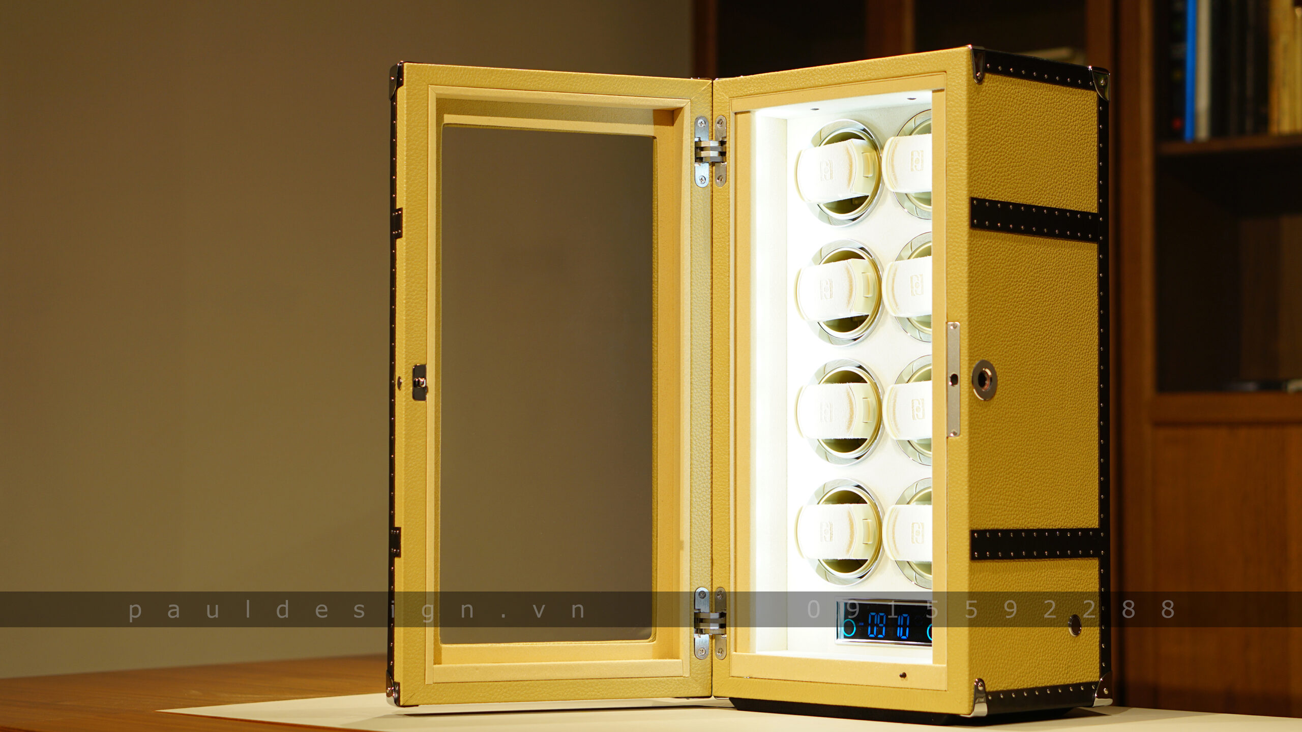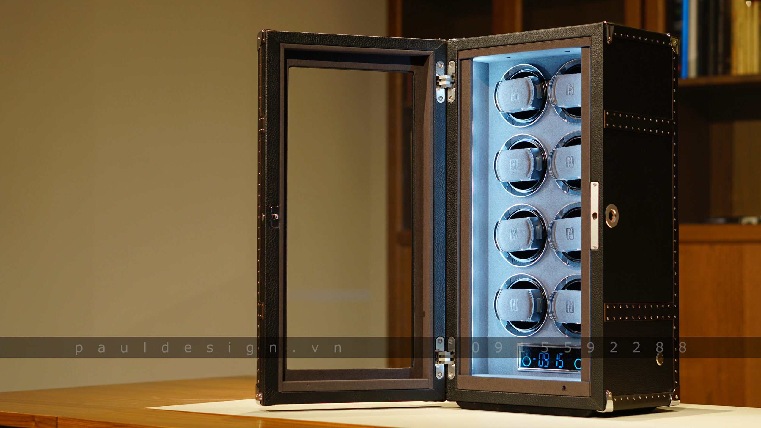 Hộp quay đồng hồ phiên bản Vintage 8 – Fingerprint có sức chứa lên tới 8 ổ quay, an toàn với hệ thống khóa vân tay bảo mật tuyệt vời.